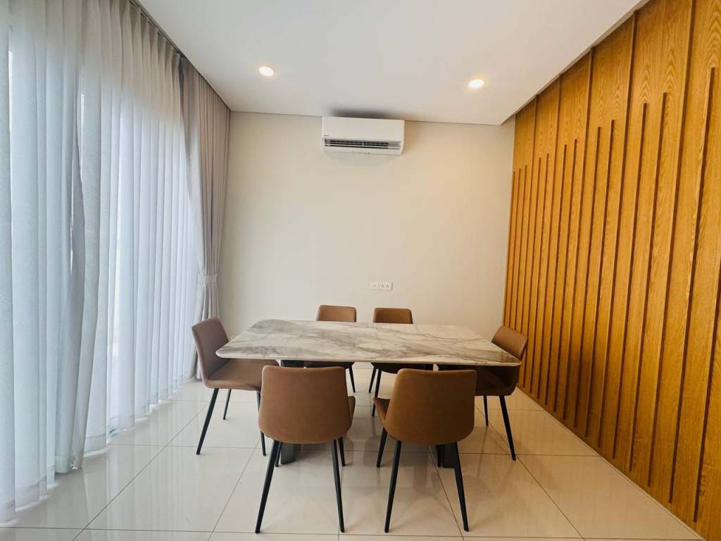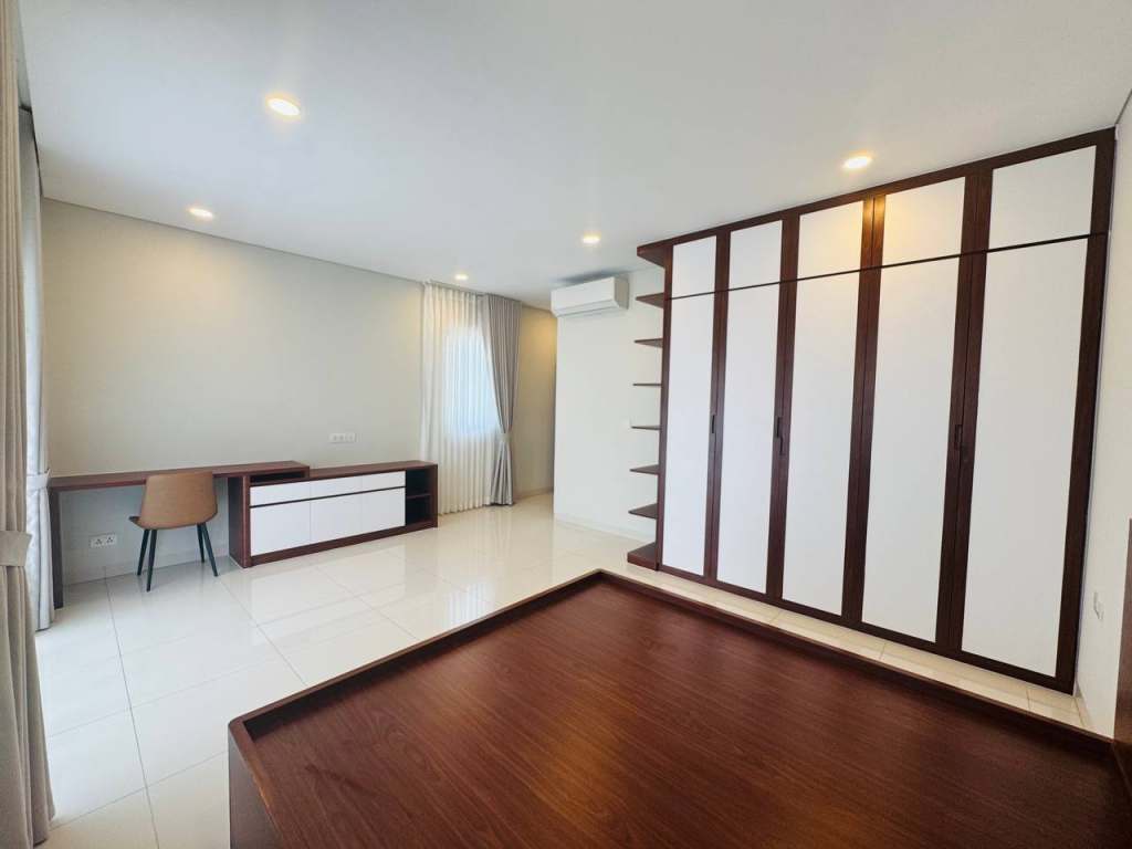 The villa is offered at a rental price of $2,800 per month (negotiable). It comes fully furnished, allowing tenants to move in immediately. The property features 4 spacious bedrooms and 6 bathrooms, designed to provide comfort and privacy for families or staff. In addition, the house includes two maid rooms, suitable for households that require additional service space.