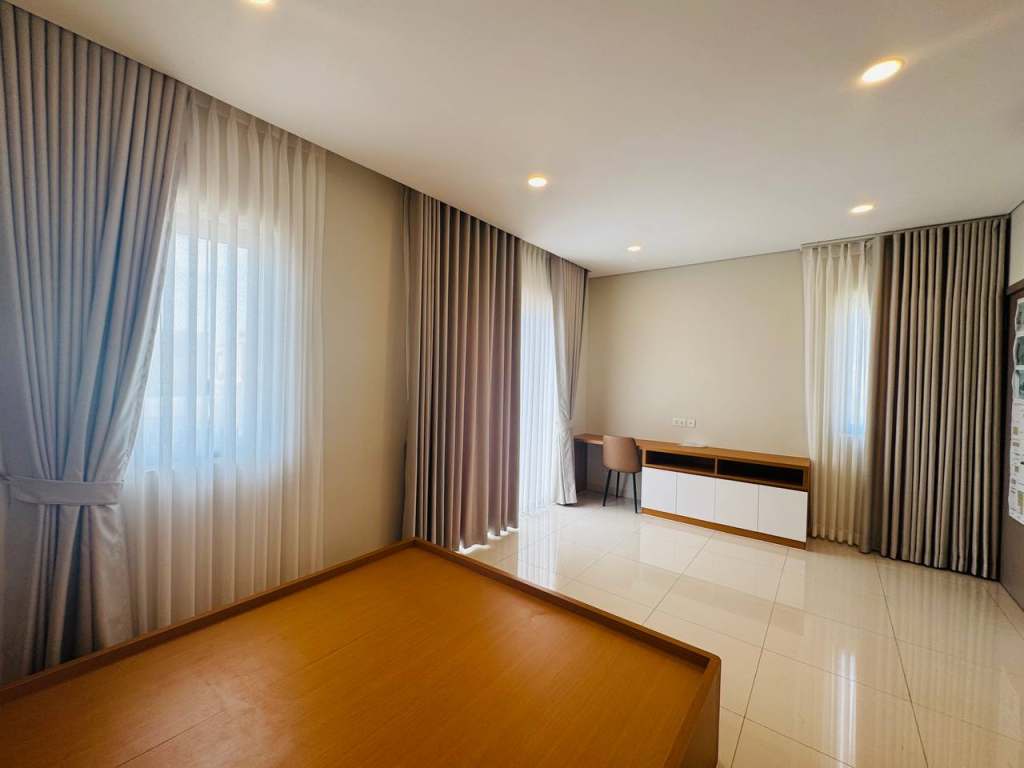 This beautiful 4-bedroom villa is available for rent in Borey Chankiri, conveniently located close to the new Techo International Airport and Aeon Mall 3. The house offers a peaceful residential environment with easy access to main roads, ideal for both living and working.