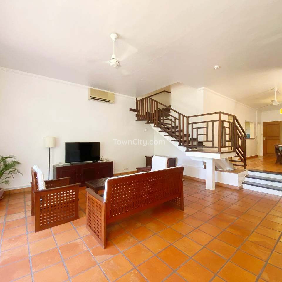 This elegant colonial-style 3 bedrooms house for rent is located in the prestigious Le Jardin Du Bassac gated community, offering a blend of charm, comfort, and modern convenience in the heart of Phnom Penh.