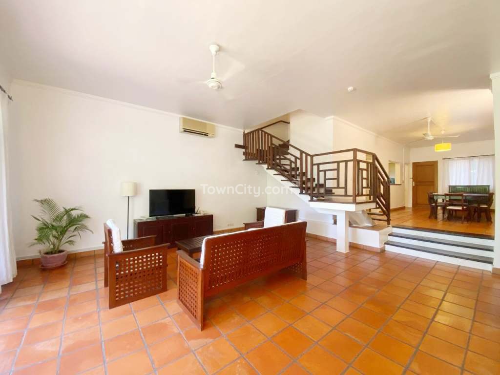 This elegant colonial-style 3 bedrooms house for rent is located in the prestigious Le Jardin Du Bassac gated community, offering a blend of charm, comfort, and modern convenience in the heart of Phnom Penh.