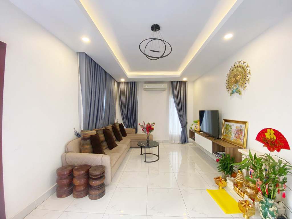 This beautiful corner villa for sale is located in Borey ONC, Romduol Village, Sangkat Snor, Khan Kambol, Phnom Penh. It’s offering a comfortable and peaceful environment for family living. The property is available for $145,000 (negotiable). The price includes some materials, making it a great value for buyers looking for a ready-to-move-in home or a long-term investment.